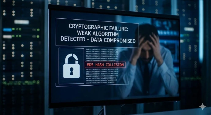 Beginner-friendly explanation of cryptographic failures, weak encryption, poor key management, and how these mistakes expose sensitive data.